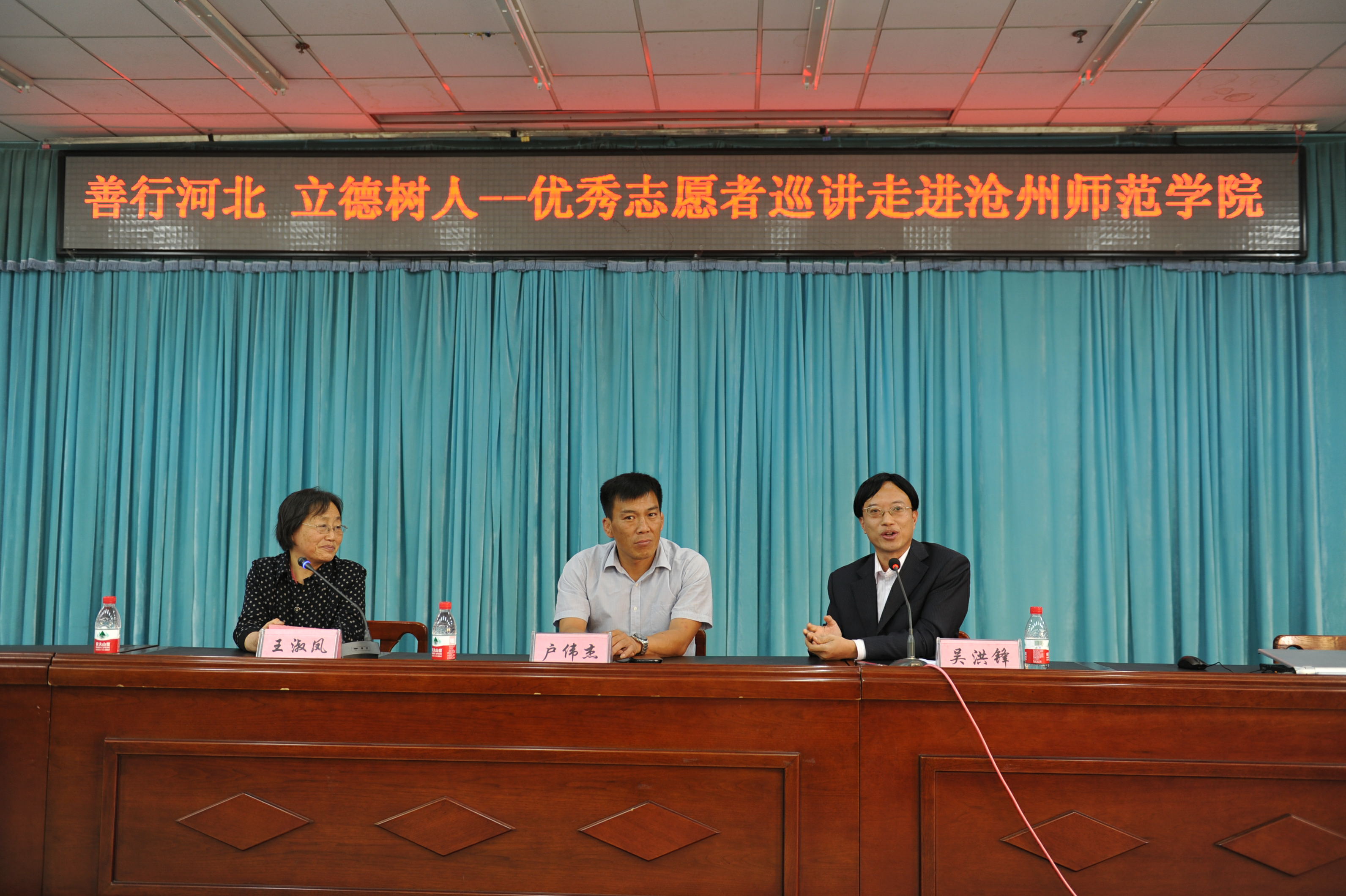 长城网沧州10月11日电(董传辉 张海健 张涵宇)10月10日下午,沧州师范学院学术报告厅隆重举行“善行河北立德树人——优秀志愿者高校巡讲”活动。