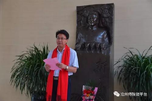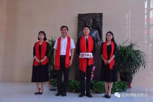 “我是中国人民的播音员、中国共产党的播音员,我传达的是中国人民战胜艰难险阻走向胜利的声音,我传达的是中国共产党堂堂正正的真理之声。我以此引为自豪!”9月11日清晨,齐越雕塑前书声琅琅。齐越传媒学院2017级播音主持专业40名学生身着正装,齐声朗诵《齐越心语》,拉开了沧州师院“齐越班”命名仪式的序幕。学生代表向齐越塑像敬献鲜花后,校党委书记陈西峰为“齐越班”授牌。校党委副书记、副校长云电军致辞。