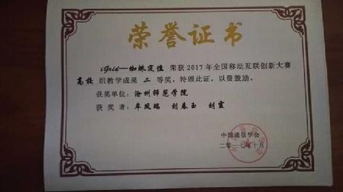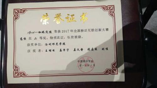 为了贯彻中共中央办公厅、国务院办公厅2017年1月印发的《关于促进移动互联网健康有序发展的意见》,2017年10月27日至29日,由国家工业和信息化部、中国科学技术协会、中国思路规划研究中心指导,中国通信学会、全国移动互联网产业孵化中心、中视科华文化产业研究中心主办的2017年第三届全国移动互联创新大赛决赛在北京亦庄京津冀全球路演中心举行。此次比赛共有来自全国各地社会组织与高校的2000多个项目参赛,经过激烈角逐,包括我校计算机科学与工程学院《iGrid——蜘蛛定位》在内的250个项目进入决赛。我校计算机学院师生与中国科学院、清华大学等国内众多知名高校和科研院所同场竞技,不畏强敌,勇于拼搏,喜获大赛高校组二等奖,力压河北大学、华北理工大学获得省内参赛高校最好成绩。