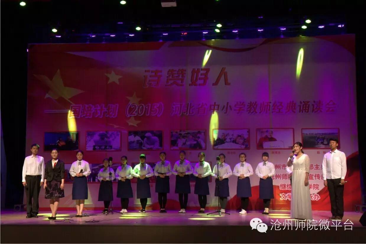 本次朗诵会由市委宣传部主办,我校承办。旨在进一步弘扬道德风尚,使好人精神更加深入人心,营造学习道德模范、争做“沧州好人”的浓厚氛围。朗诵会共朗诵了14首诗歌,是从108首“诗赞好人”原创诗歌中精选出来的。诗歌《白方礼》赞颂了无私奉献、通过蹬三轮车资助学生的白方礼;《干妈,我走了》讲述了周汝珍和她照顾了9年的“儿子”刘春虎之间的感人事迹;《尹升老人》赞美了给流落街头的孤苦老汉营造温馨晚年的尹升……一首首诗歌寄真情,朗诵者情到深处,或言语哽咽,或热泪盈眶。动人的故事,感人的朗诵,不时赢得观众热烈掌声。