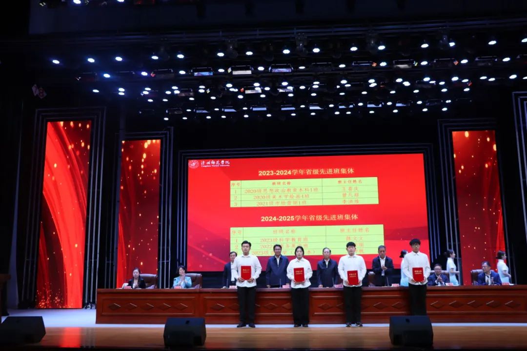 与会校领导为获表彰的集体和个人颁奖。证书和掌声既是对他们过去努力的总结与肯定,更是对未来征程的期许和激励。