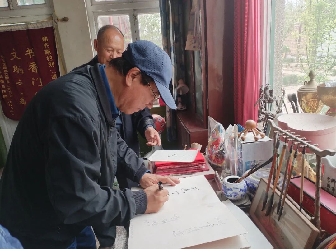 河北省民间文艺家协会会员、沧州市民间文艺家协会理事、著名青年剪纸艺术家石飞为专家和村民现场创作剪影作品。