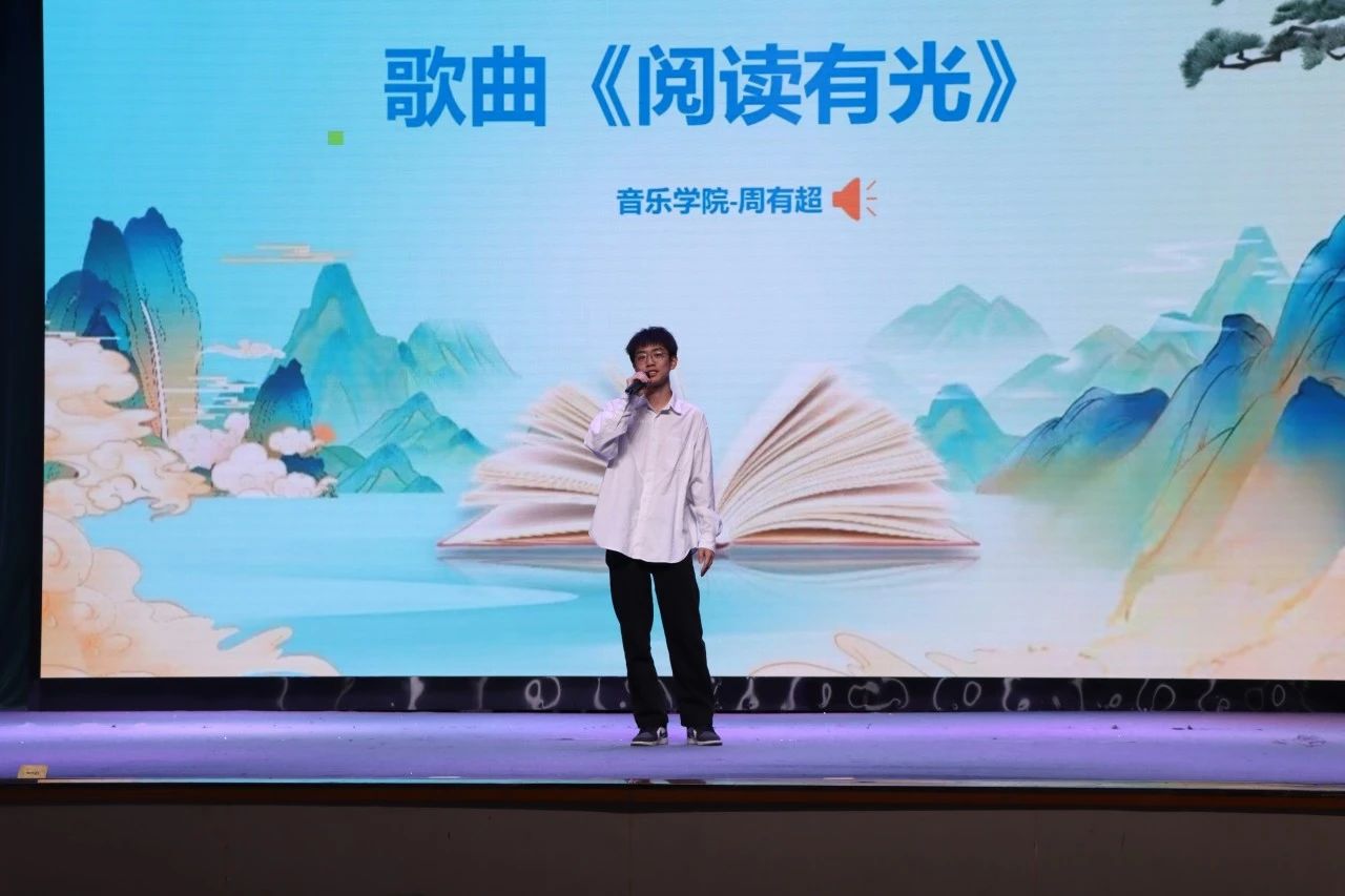 随后,图书馆的工作人员及来自部分学院和社团的同学向在场观众献上了歌曲、朗诵、话剧等节目。