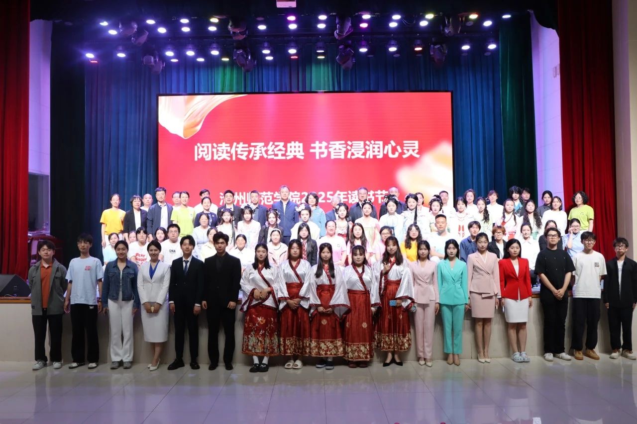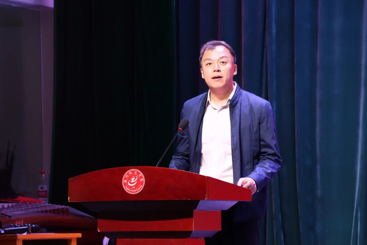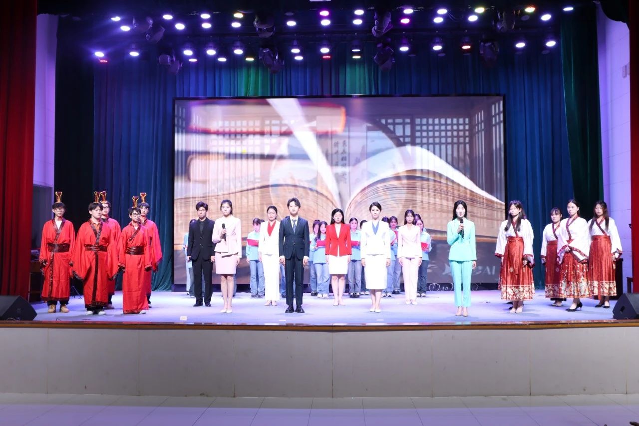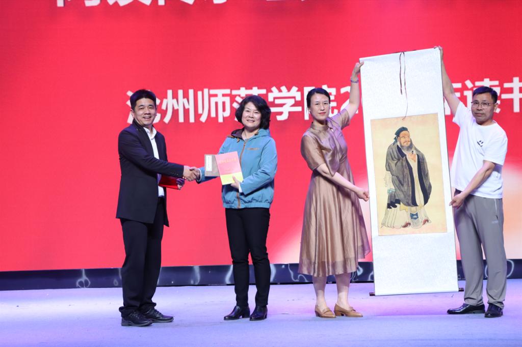 4月23日,我校2025年读书节在冀春音乐厅开幕,党委常委、副校长高颖、朱蓬华,沧州市孔子学会秘书长孔维涛,沧州市新华书店总经理吴晓东,沧州周易研究会常务副会长田新刚出席开幕式。