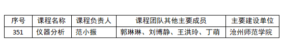《仪器分析》是一门多学科交叉与融合的综合性课程,是我校化学与化工学院化学和应用化学专业必修的基础课程,授课对象覆盖化学、应用化学、化学工程与工艺和环境工程四个本科专业,为后续课程、实习实训、毕业论文、就业工作奠定基础。该课程2011年先后被评为校级精品课程和省级精品课程;2020年被遴选为省级一流本科立项建设课程,2021年被评为沧州师范学院首批“课程思政示范课程”,2023年获批省级课程思政示范课程。仪器分析课程组为省级优秀基层教学组织,是一支具有较好的职称结构、学历层次、学缘结构和年龄结构的教学团队。