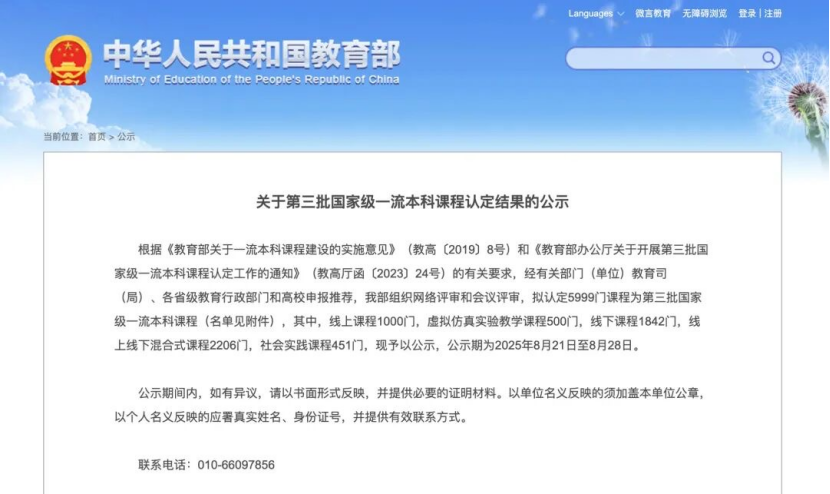 近日,教育部公示了第三批国家级一流本科课程认定结果,我校《大学语文》《仪器分析》两门课程成功入选,这是学校在教学改革与课程建设领域取得的又一重要成果,标志着我校在本科课程建设领域实现重大突破,课程质量与建设水平获国家级权威认可。