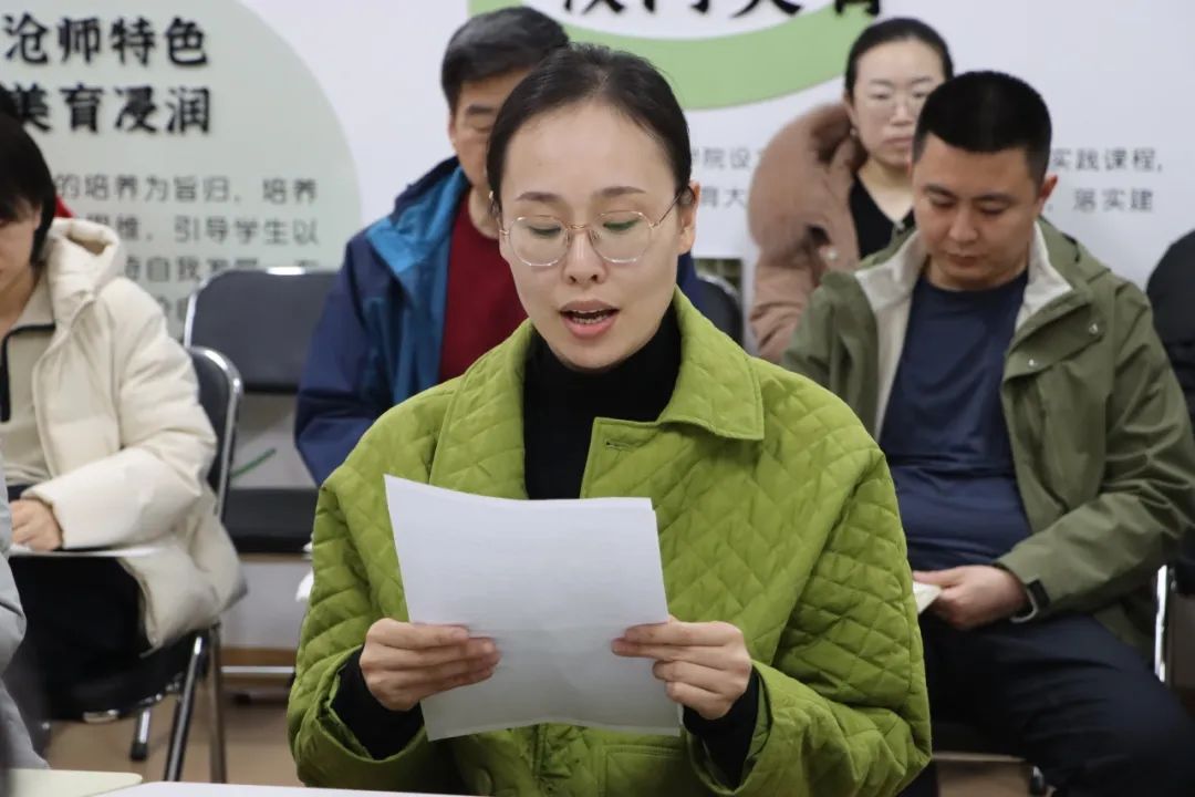 高颖在主持教研活动时强调,美育是心灵的滋养,是文化的传承,更是时代的要求。在过去的三年里,沧州师范学院大学生美育中心在学校党委正确领导下,深耕细作理论美育,推陈出新美育实践,浸润开展社会美育,全力打造特色品牌,实现了美育课程从无到有、从有到优的飞跃。今后,美育课程和实践活动要在课程的体系化、标准化和校本化建设上下功夫,努力为全校学生提供更加优质的美育教育,为培养德智体美劳全面发展的社会主义建设者和接班人贡献力量。