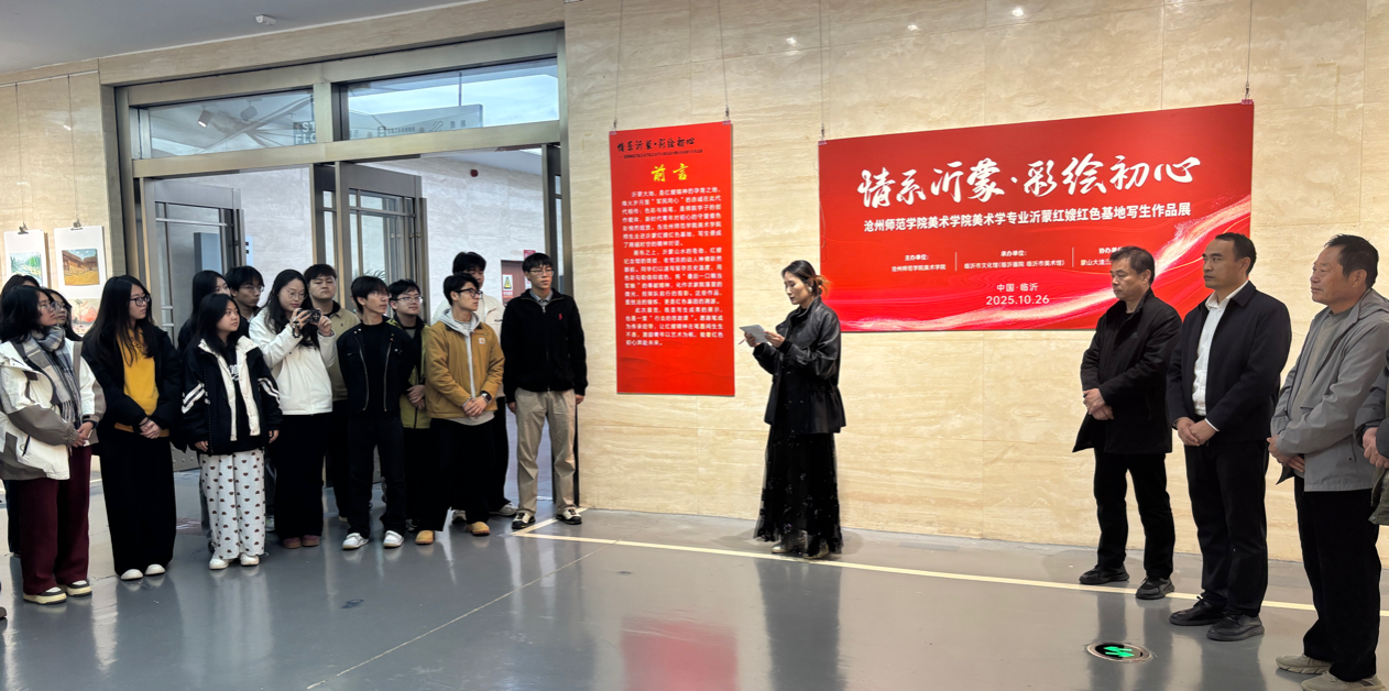 情系沂蒙燃热望,丹青绘就赤子心。10月26日,我校美术学专业在临沂市美术馆举办“情系沂蒙·彩绘初心”沂蒙红嫂红色基地写生作品展。临沂市美术馆经理王乐群,蒙山大洼三里沟写生基地王进奇先生,美术学专业基础教研室主任张超平,教师杜飞、赵虹霖、王德磷以及2024级美术学专业全体学生参加开幕式,教师张金美主持。