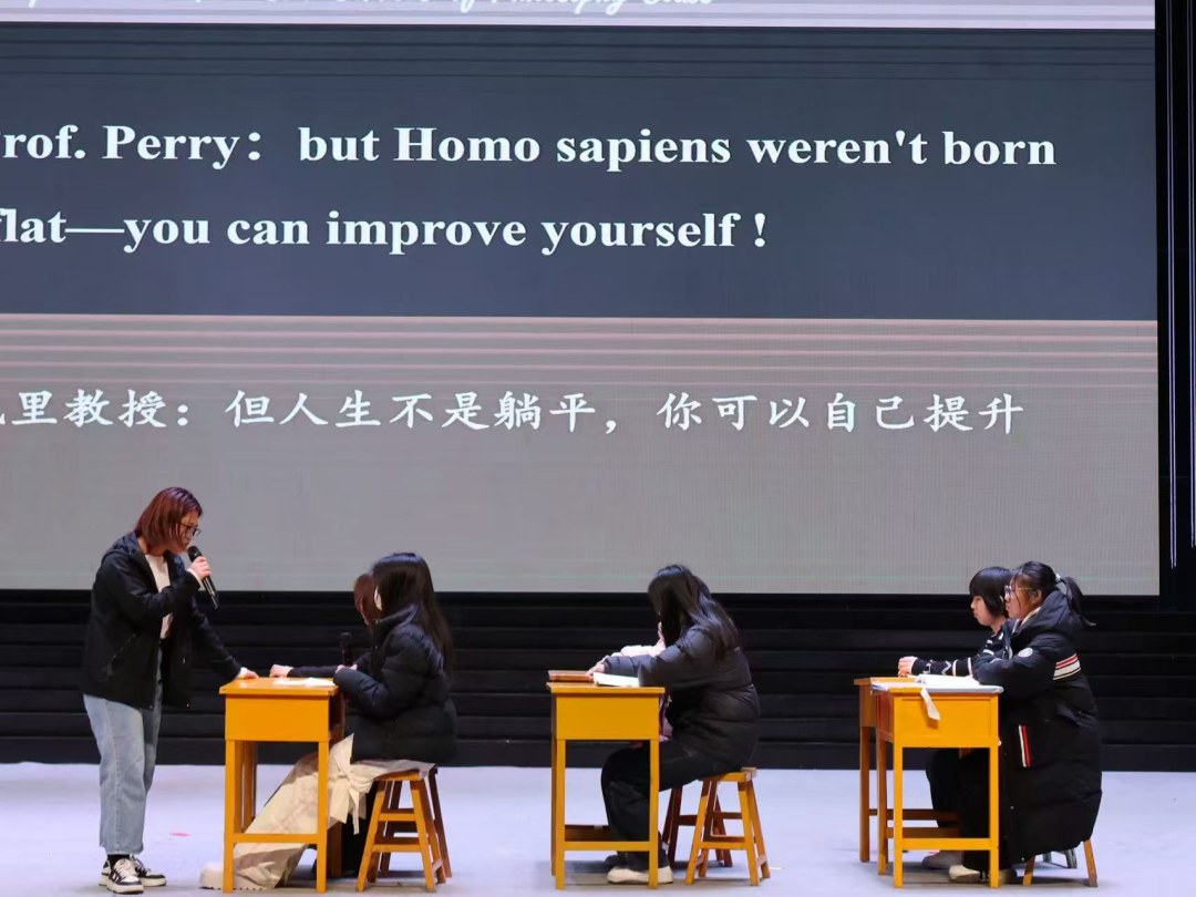 活动现场亮点纷呈。舞蹈《Wake》《Is this love》以动感舞姿与细腻情感点燃气氛;《星辰宣讲团——以人民为中心》演讲、《青春激昂声声语,德行涵养学风正》朗诵,既展现扎实语言功底,又传递责任担当与正学风的信念。外语话剧《A promise is as good as gold》《Homeless to Harvard: The Liz Murray Story》分别以诚信坚守、打破命运枷锁为内核,凭借流利台词与细腻演绎引发共鸣;影子剧《求职陷阱》聚焦求职反诈,实现语言与舞台创意结合的同时给出现实提醒;配音秀《Dubbing Show》以精准语音赋予影视片段青春质感,中西结合相声《Honesty is Gold》则用趣味形式诠释诚信主题。合唱《Good Time》为活动画上圆满句号。