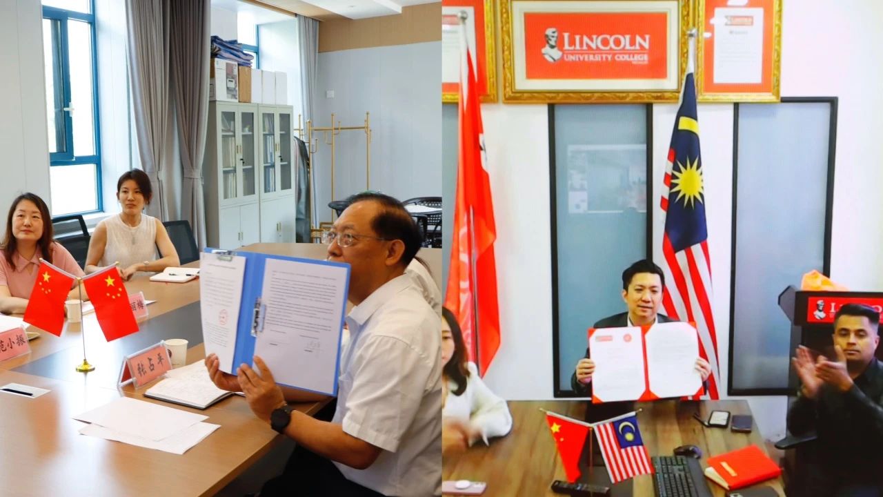 6月12日,我校与马来西亚林肯大学学院签署友好合作协议。校长张占平、马来西亚林肯大学学院执行校长拿订哈菲扎分别致辞,党委副书记范小振主持仪式,马来西亚林肯大学学院副校长许聪晖、工程院校院长拿督嘉尔马,我校国际交流中心主任韩丽梅、副主任刘宣妤,计算机科学与工程学院院长马文娟共同见证了这一重要时刻。