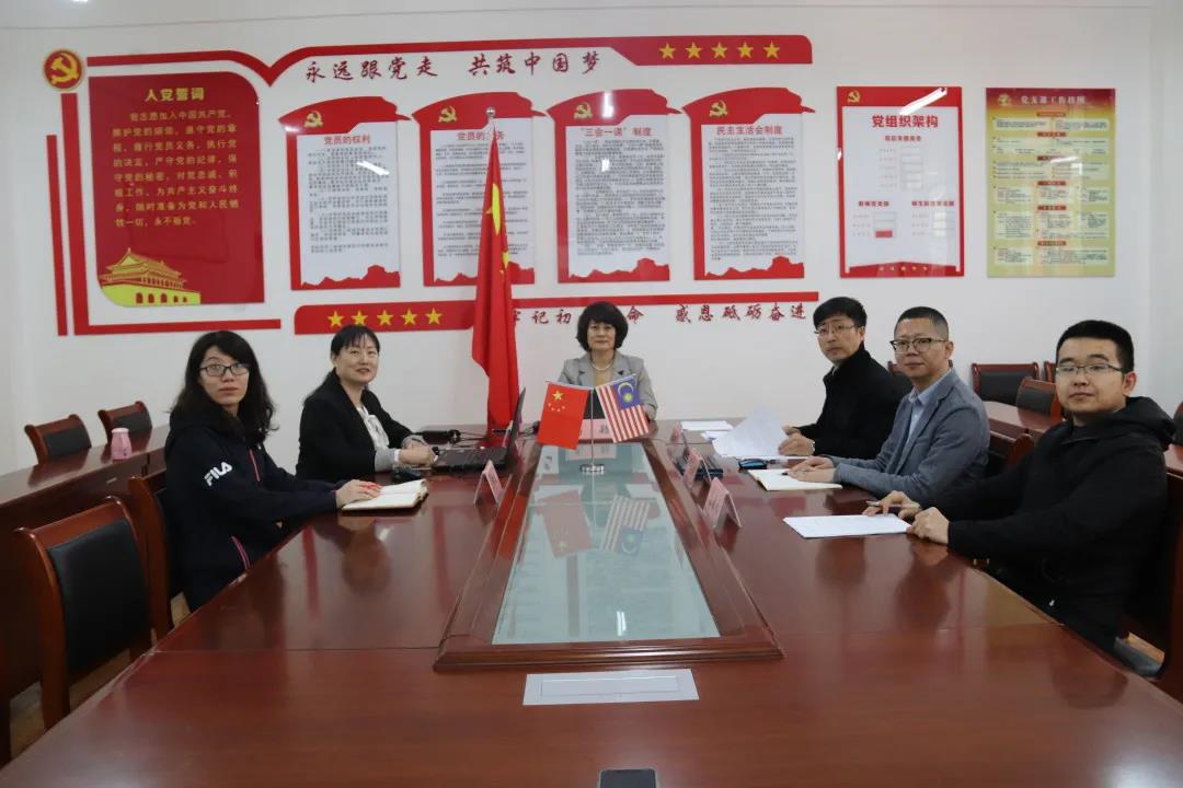 我校国际交流学院、外国语学院相关人员、赴马读博教师代表,玛拉工艺大学相关工作人员及教师代表参加了会议。