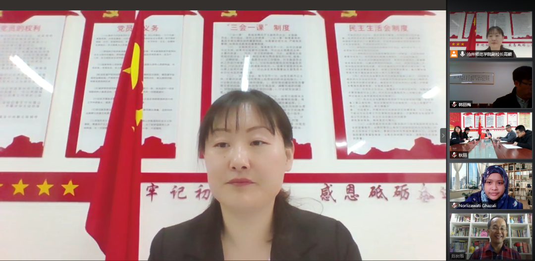 Latisha Asmaak Shafie在致辞中对我校为两校交流作出的努力表示了感谢,对玛拉工艺大学的师资、学术成果进行了介绍,并向我校发出诚挚邀请,希望在疫情缓和之后,双方能够继续深化合作,积极开展线下交流。