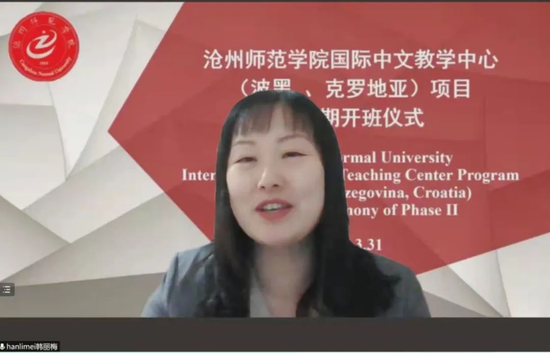 高颖宣布沧州师范学院第二期国际中文教学中心项目正式启动!高颖指出,沧州师范学院国际中文教学中心第二期项目是在总结经验、精心设计的基础上打造的。我校会以此为契机全面推动国际中文教学中心良性运转,选派优秀师资参与授课,我校的任课教师将中华文化融入不同的主题之中,将实用性和趣味性集于一身,期待大家在云课堂中张开嘴大声讲、拿起笔认真写、站直身动起来,一起享受中华传统文化的美好,积极组织文化交流活动,培养出更多优秀的汉语人才。