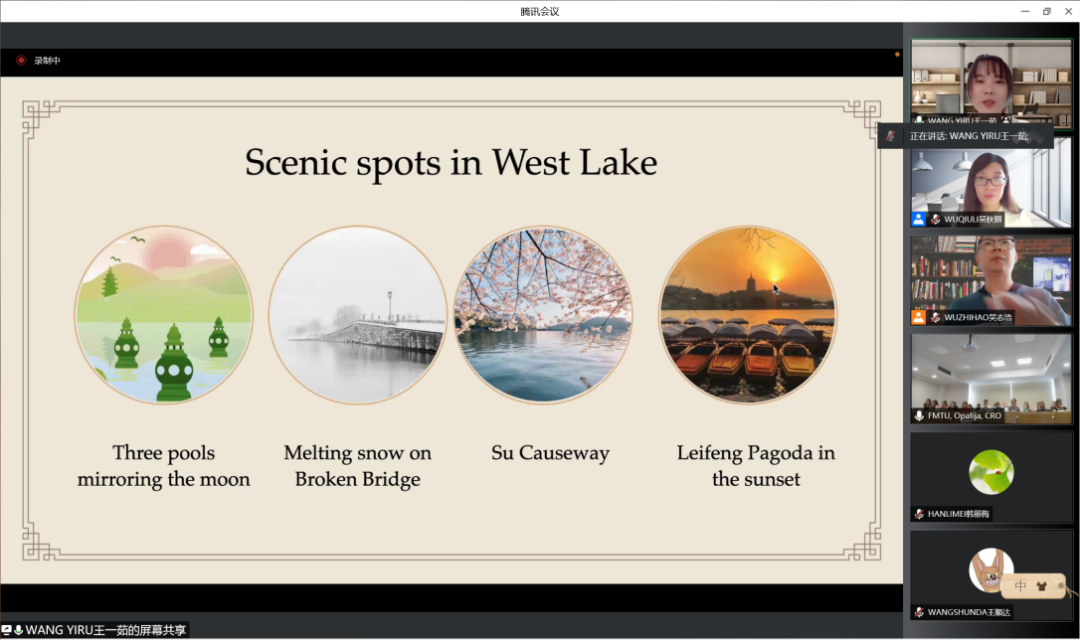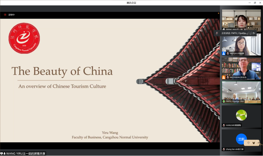 5月10日,应克罗地亚里耶卡大学旅游管理学院之邀,我校商学院青年教师王一茹走进国际旅游课堂,带来题为《大美中国-中国旅游资源概况》全英文线上讲座。