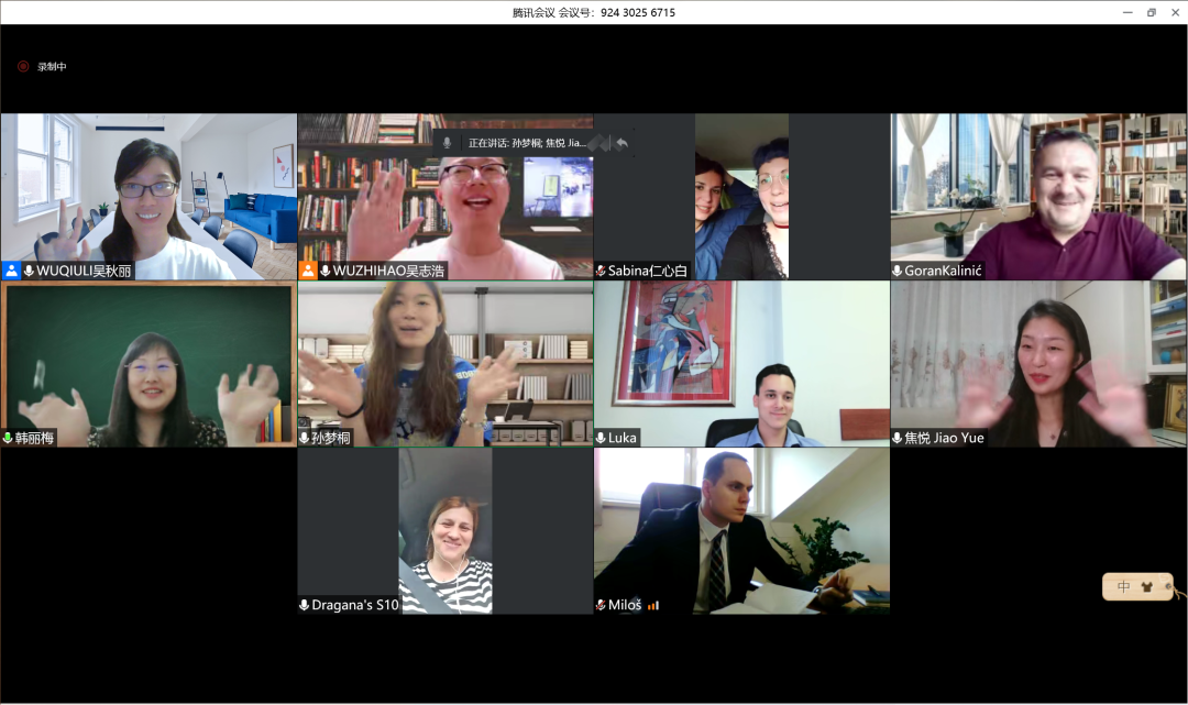 波黑努布尔独立大学国际部主管GORAN、老师MILOS、学生SABINA、LUKA作为学员代表发言,真诚表达了对老师们的感谢和对中华传统文化的喜爱。