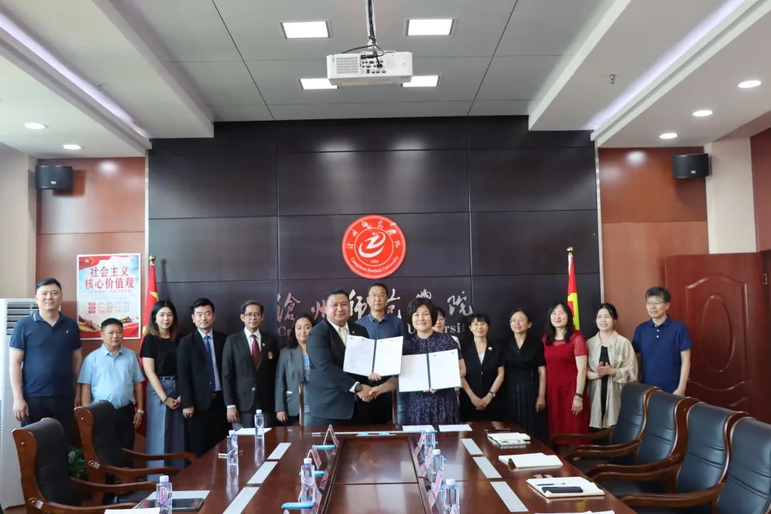 高颖与宋霸·吴提詹代表两校签署合作备忘录,共同为沧州师范学院-泰国素叻他尼皇家大学中国研究中心揭牌。