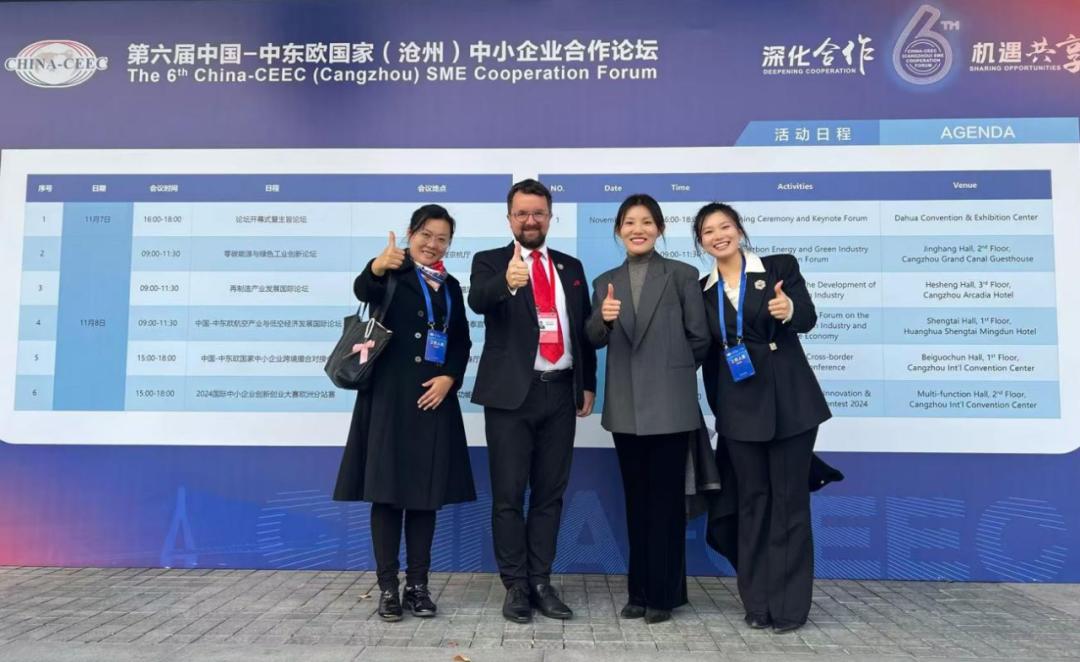 在第六届-中东欧国家(沧州)中小企业合作论坛上,我校领导师生齐上阵,展现出了非凡的实力与担当。会议期间我校成功接待了匈牙利锡盖特圣米克洛什市、波黑巴尼亚卢卡市等国际友好城市代表团。承接中捷线下分论坛,与论坛重要嘉宾捷克托马斯拔佳大学代表、意大利LABA美术学院国际交流合作专家洽谈合作;同时我校邀请了3名国内外知名专家参加开幕式;国际交流中心副主任刘宣妤和孙梦桐老师承担“一对一”的接待工作,让斯洛文尼亚代表团感受到了无微不至的关怀,还选派了4名优秀的中青年教师,承担会议翻译工作;我校团委还派出志愿者团队,圆满完成礼仪、解说和引领的志愿服务。