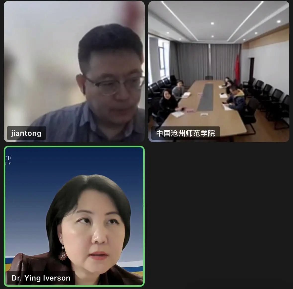 4月3日,我校与美国西崖大学举行线上会议。国际交流中心主任韩丽梅、副主任刘宣妤、美国西崖大学副校长兼学术总监Iverson教授在线交流研讨。活动由韩丽梅主持。会上,韩丽梅主任介绍了往期中美青少年夏令营项目的成功经验,并表示,希望双方通过上述项目建立合作基础,促进深层次交流交换。双方还围绕中美青少年夏令营项目、留学交换生项目和教育与英语专业硕博项目进行了详细讨论,并结合双方办学特色和办学理念,深入探讨了学生交换、教师访学的可行性。