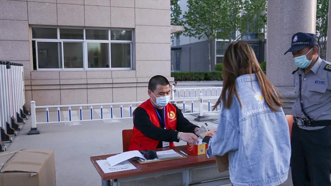 我校学生利用课余时间,帮助门卫测量体温