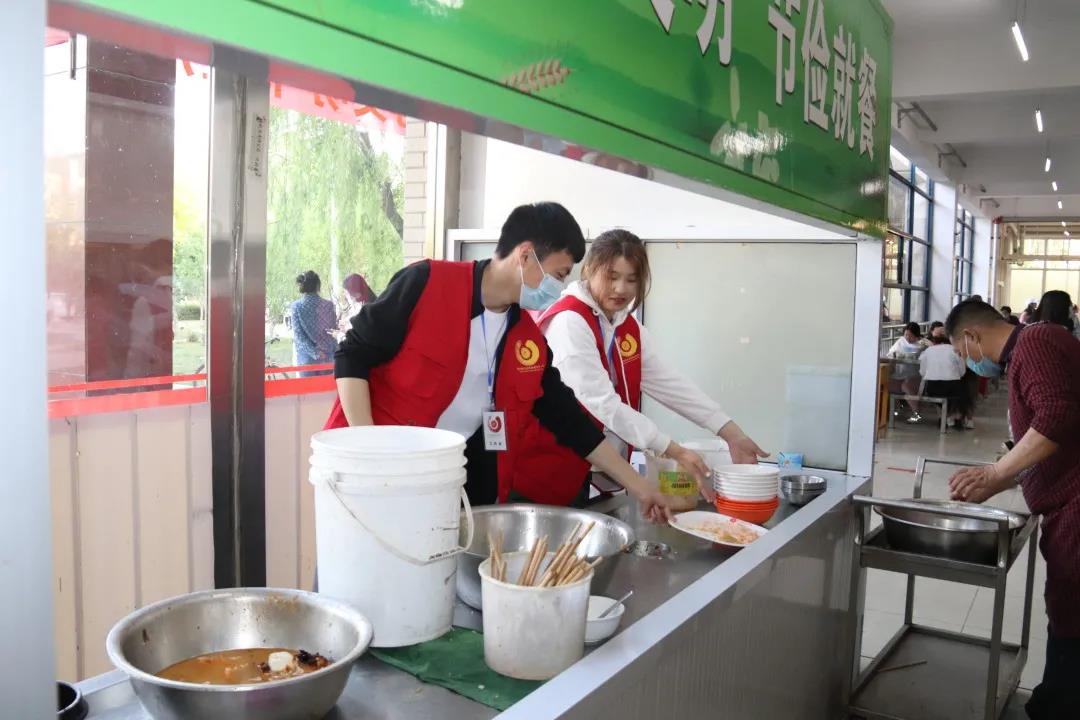 我校学生利用课余时间,体验食堂工作