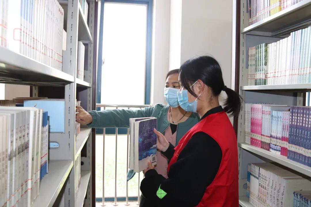 我校学生协助图书管理员整理图书
