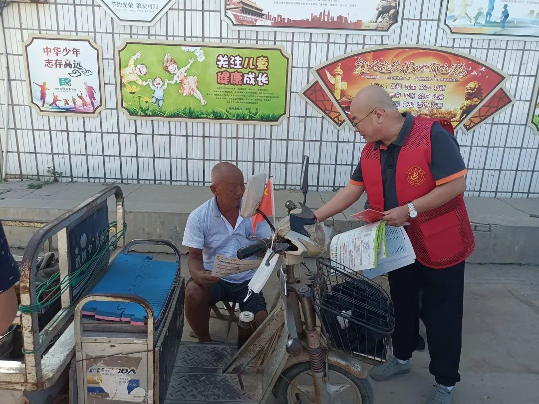同日下午,志愿者们走进村民身边,发放、讲解“沧州市创建全国文明城市应知应会”“沧州市民文明手册”等宣传资料。