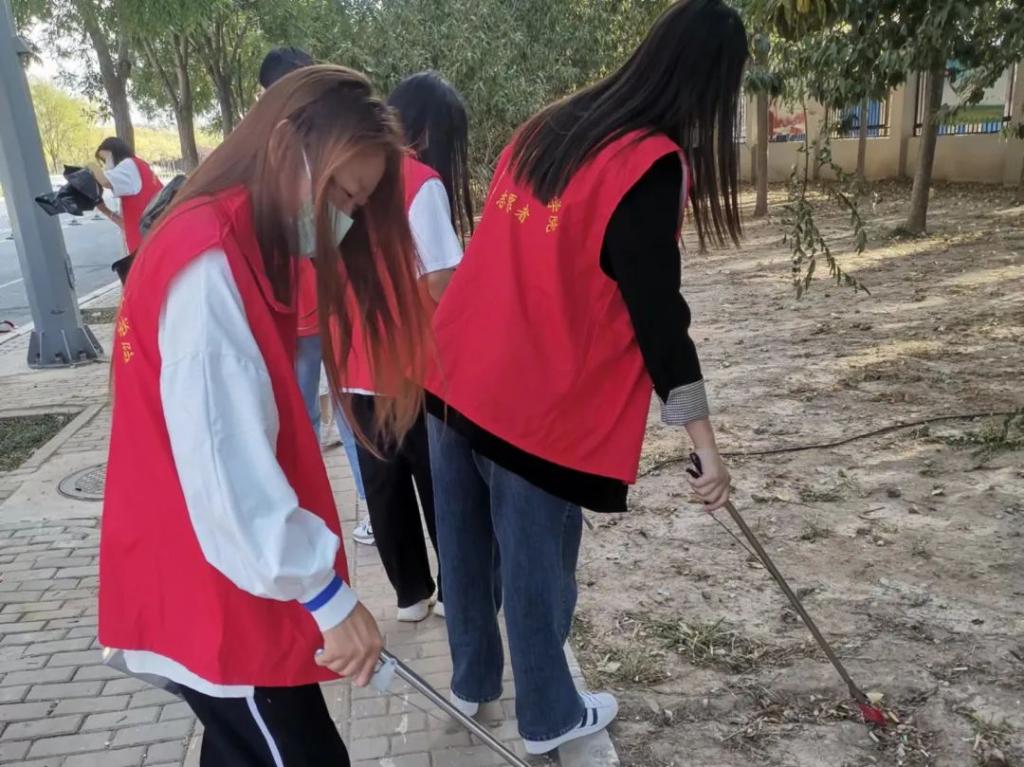 志愿者准时到达指定位置领取打扫工具,并统一走出校门,对人行道和绿化带中的纸屑、果皮等垃圾进行细致地分类清理,不遗漏每一个角落。大家铆足干劲,不辞辛劳,志愿服在身,责任在肩,忙碌的身影遍布在学校周边各处,成为了街道中最耀眼的“小红”。