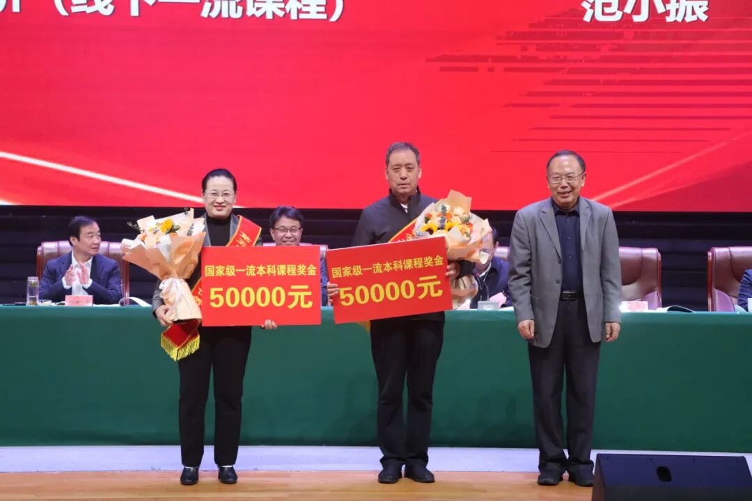 大会对我校干部教师取得的国家级一流课程、河北省“十四五”普通高等教育本科规划教材主编、2025年河北省教学名师和优秀教学团队、第五届河北省高校教师教学创新大赛、河北省高校青年教师教学竞赛、第二届河北省普通本科高校课程思政教学竞赛、入选教育部典型案例、河北省优秀基层教学组织、2025年指导学生获得国家级学科竞赛指导教师、沧州师范学院2025年青年教师讲课大赛获奖教师等荣誉和称号进行了表彰。与会领导为获得表彰的集体和个人颁奖。这份荣誉不仅是对过去努力的肯定,更是对教师们持续深耕课堂、潜心育人的鼓励。