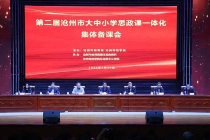 跨学段教研联动平台。以河北省教育系统先进集体沧州师范学院马克思主义学院为主阵地,依托河北省大中小学思政课一体化集体备课中心(沧州市)及马克思主义学院红色文化长廊,组织两场沧州市大中小学思政一体化集体备课会、三场沧州市大中小学“开学第一课”,并累计召开多场思政研讨会,创设教师联合教研机制。