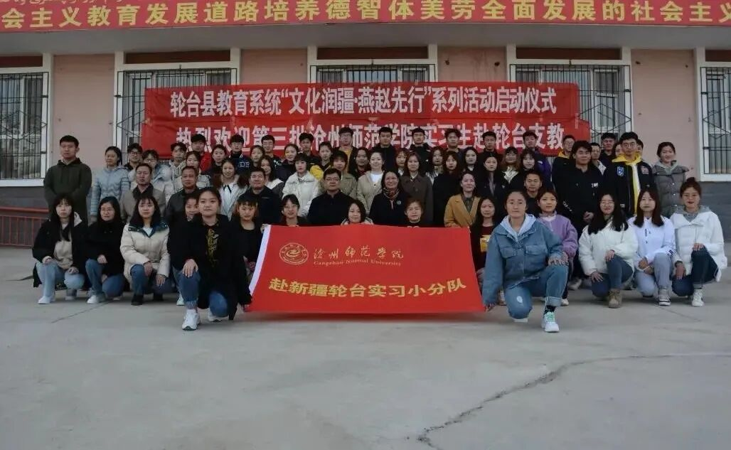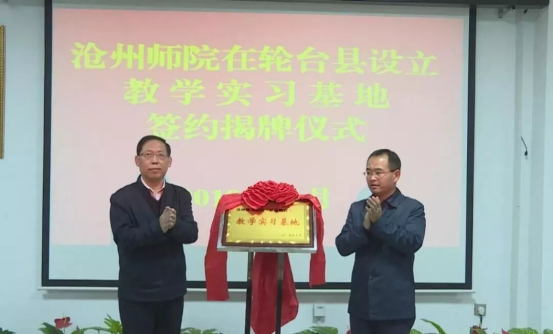 常态化的基地建设是教育援疆持续深入的战略支点。为将援疆支教从项目式合作提升为稳定的校地协同育人平台,2019年11月4日,学校与轮台县正式签署合作协议并举行“教学实习基地”揭牌仪式。基地的建立,标志着沧轮两地的教育合作进入了制度化、常态化的新阶段,为后续持续派遣实习生、开展教师培训、深化教研合作奠定了坚实的组织基础。