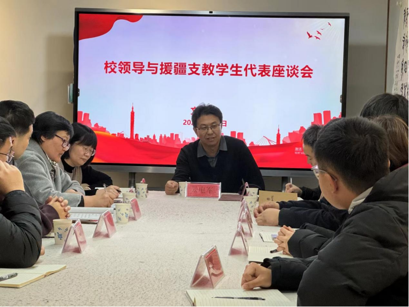 图 云电军书记与援疆支教学生代表座谈