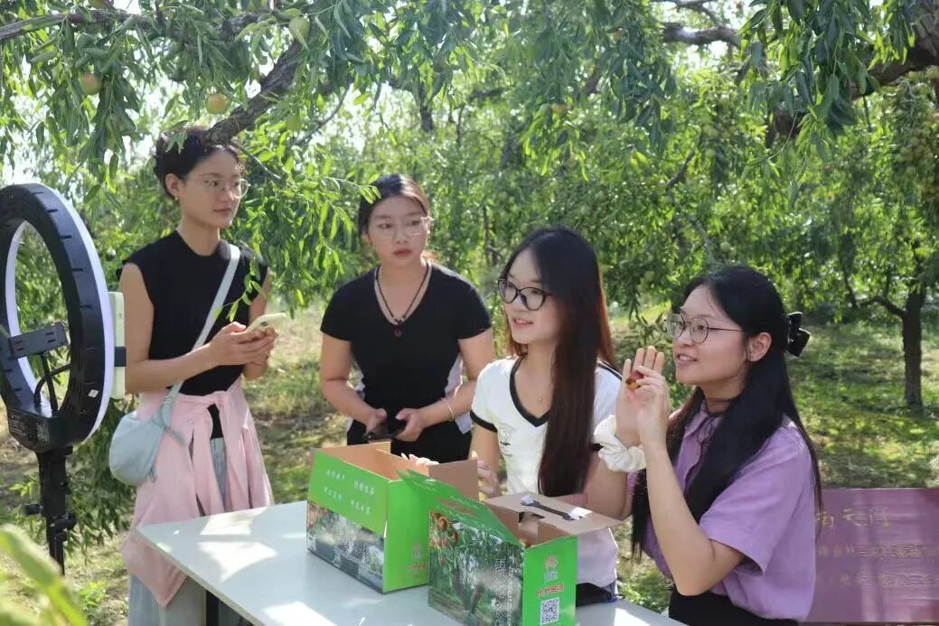 自2020年起,基地启动《语言助力脱贫攻坚活动策划与实践》重点项目,创作160余篇推普脱贫主题朗诵作品,出版《语助乡村振兴》书籍及音像制品,以语言为工具搭建脱贫桥梁。基地创新探索“语言+电商”模式,组建“齐传添翼”直播团队,围绕旱碱麦、红芒子面粉等地方特色农产品开展公益带货直播;2023年共建产教融合直播基地,2024年进一步扩大直播助农覆盖面,有效拓宽乡村增收渠道。