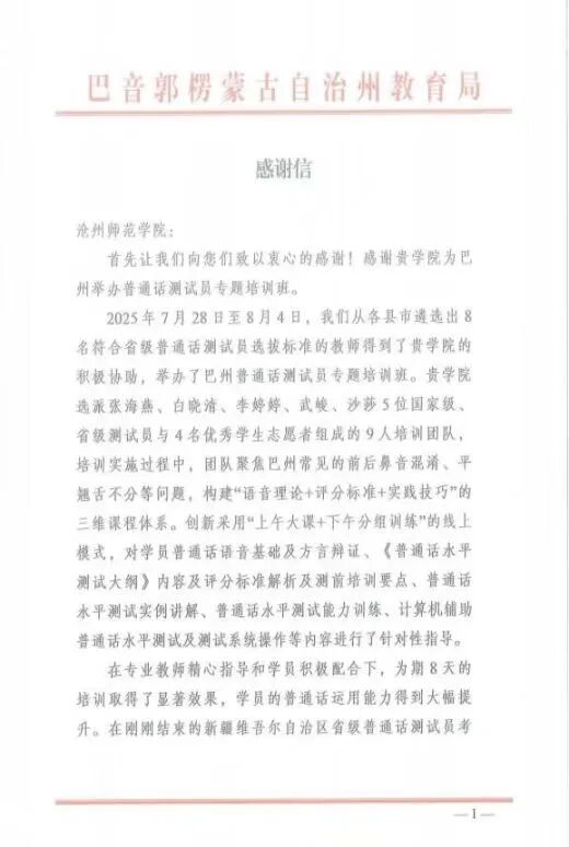 图10 新疆巴州两次发来感谢信,2025年在全疆测试员考核中全部通过三项考试,通过率100%。