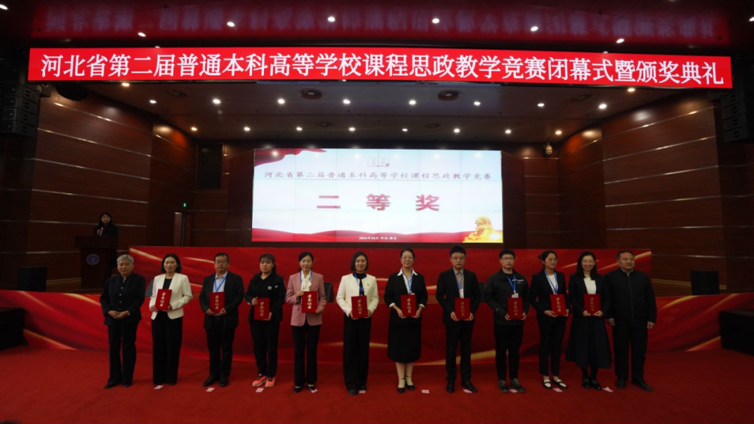 10月11日至13日,河北省第二届普通本科高等学校课程思政教学竞赛决赛在河北大学举行。经过多轮激烈角逐,我校张锐锐老师荣获工科组二等奖、王益芳老师荣获工科组三等奖、赵倩倩老师荣获教育艺术组三等奖、代宁老师荣获教育艺术组三等奖。