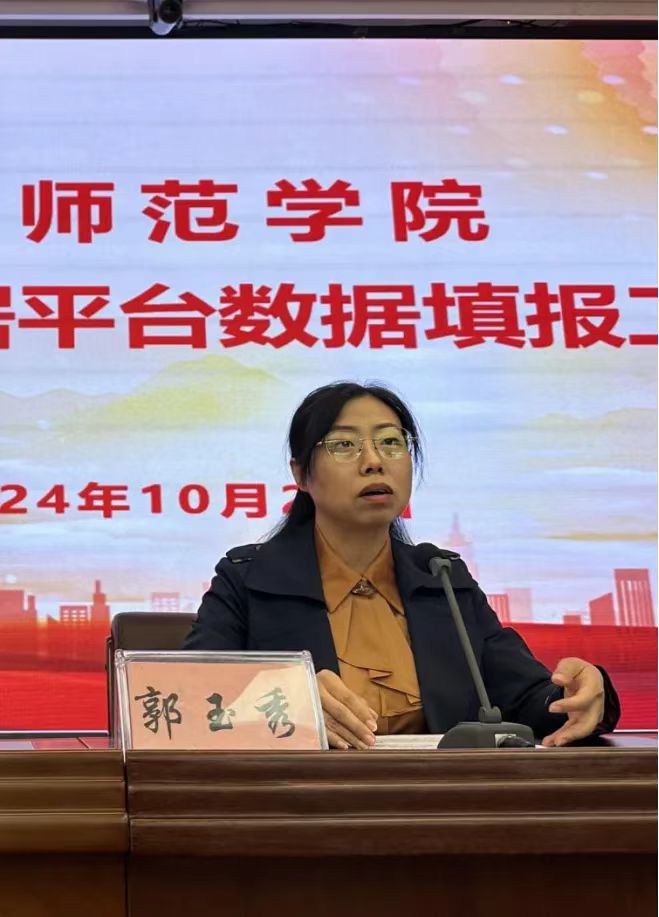 郭玉秀指出,2024年是我校评估建设年,本科教学基本状态数据填报工作至关重要。各职能部门及教学单位要强化责任意识,把握时间节点,加强沟通学习,及时汇报咨询,确保全面、精准、高效做好数据填报工作。 对我校2024年高等教育质量监测数据填报工作,郭玉秀提出四点要求: 一是要提高站位,统一思想。要深刻认识到数据填报工作的重要性,把它作为当前一项重要政治任务来抓,确保每一项数据都经得起检验。 二是要精心组织,明确责任。各部门主要负责人要切实担负起数据填报工作的第一责任人职责,加强对数据填报工作的组织和领导,严格按照学校统一部署,指派专人填报,确保数据填报工作的有序进行。同时,各职能部门及教学单位要加强沟通协调,形成工作合力,共同推动数据填报工作的圆满完成。 三是要注重质量,确保准确。要吃透政策,深入理解《状态数据填报指南》的各项要求,对照《审核评估指标体系》和专业二级认证标准,确保数据填报的合理性、完整性和逻辑关联性,为评估工作提供有力支撑。 四是深入分析,推动发展。要加强对本科基本状态数据的分析应用,深入挖掘数据背后的规律和趋势,为学校教育教学改革和发展提供科学依据。 王欣艳对今年的数据填报工作进行了具体部署,并结合审核评估指标体系及专业认证工作,深入分析了往年数据填报中出现的问题,对牵头单位责任、数据来源要求、核心数据核验、填报时间节点分别作出重点提醒。各相关职能处室、各学院主要负责人及数据填报工作人员共70余人参加会议。